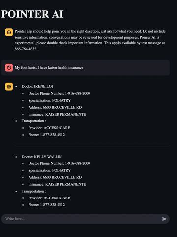 Developed to simplify the search for appropriate medical care, this style product can be adapted to help customers find products or services based on a description they provide. This product integrates with SMS, and can be accessed by text message.